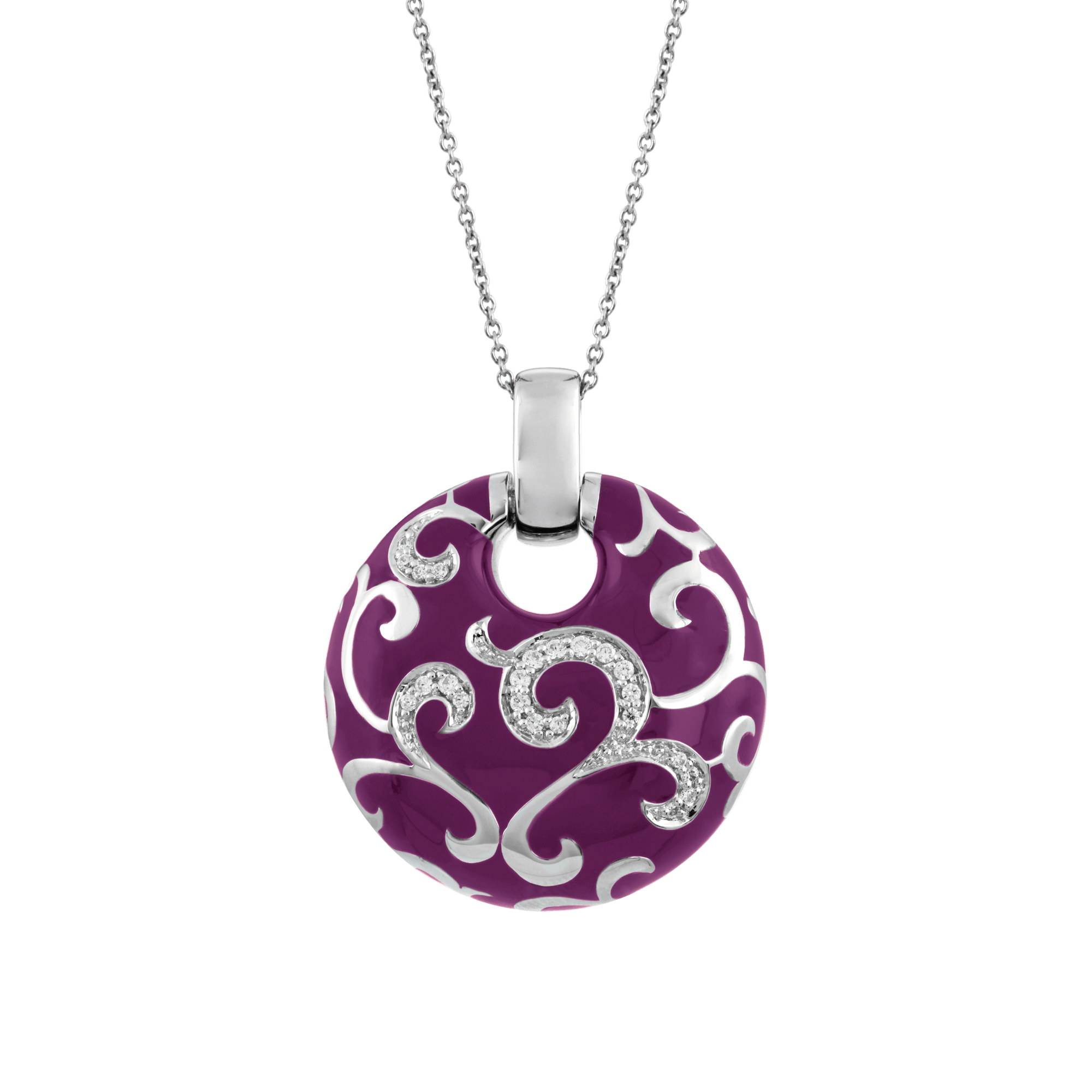 Dark Orchid: Hand-painted dark orchid Italian enamel with white stones set into rhodium-plated, nickel allergy-free, 925 sterling silver