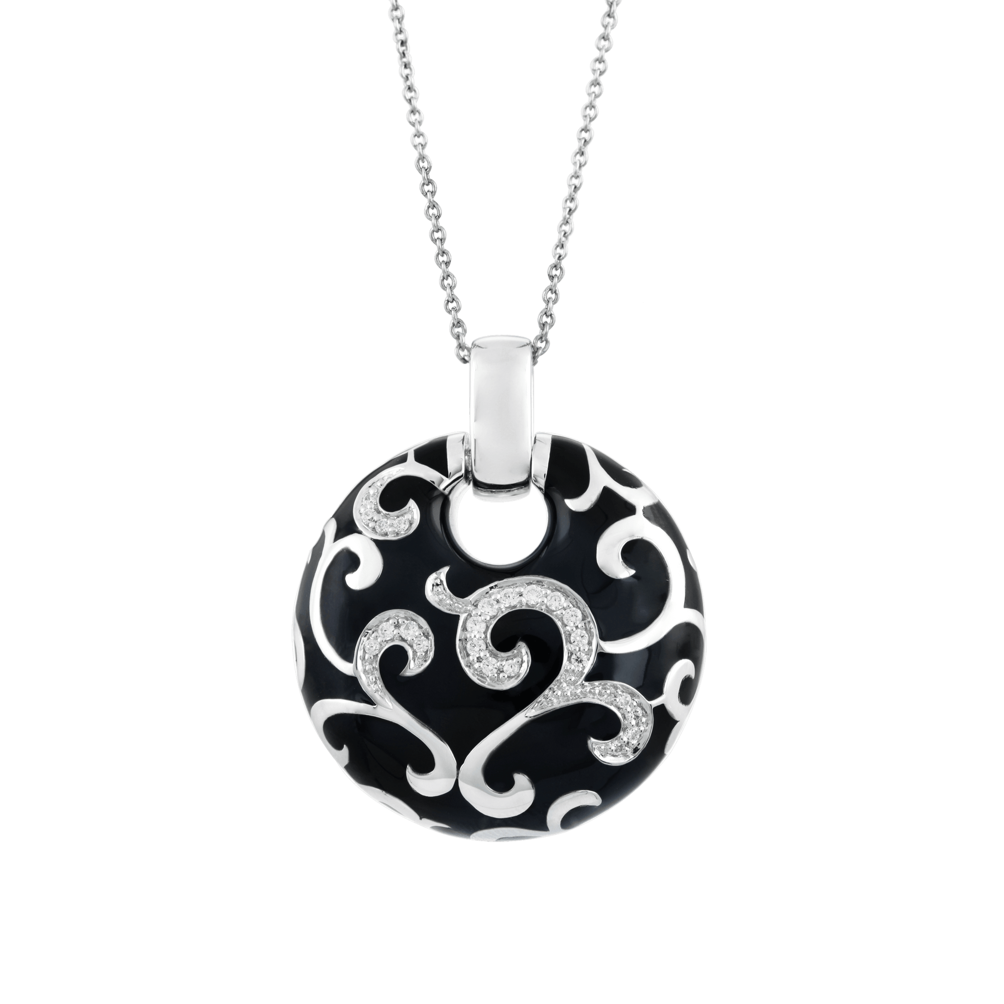 Black & White: Hand-painted white Italian enamel with black stones set into rhodium-plated, nickel allergy-free, 925 sterling silver