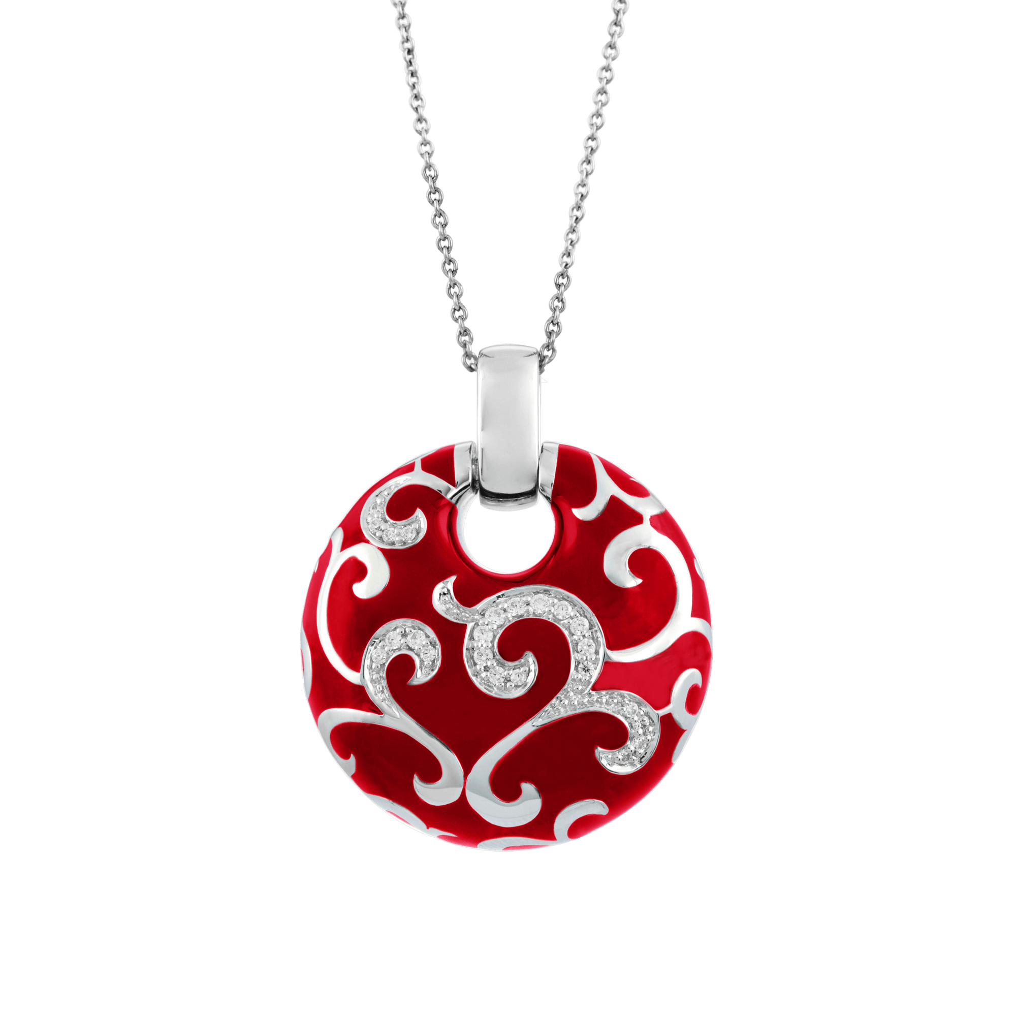 Red: Hand-painted red Italian enamel with white stones set into rhodium-plated, nickel allergy-free, 925 sterling silver
