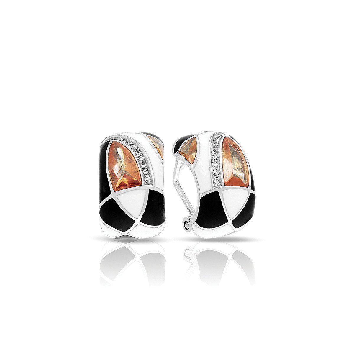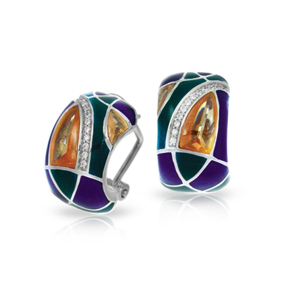 Interlacing lines of sparkling pave-set stones and sterling silver dance harmoniously in Tango, creating abstract shapes, colors, and patterns. Dynamic and rich inlaid stones glimmer passionately through the eyelets of hand-painted Italian enamel. Embrace the movement and romance of Tango