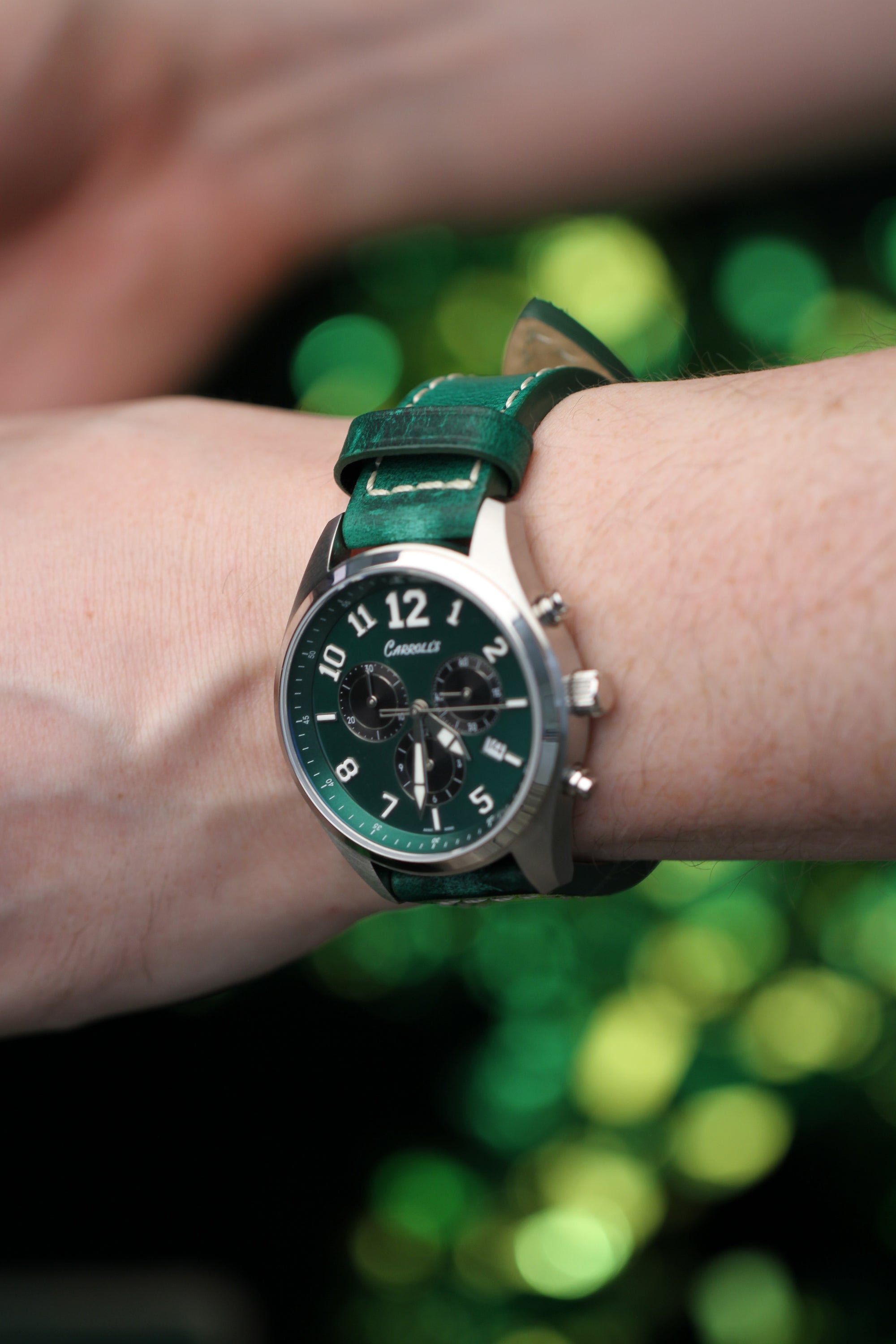 Be bold and stand out with our sleek and stylish Swiss Chronograph Men's Watch. Its precise chronograph quart movement, sapphire crystal and sturdy green leather strap make it the perfect accessory for any occasion. Make a statement with this timepiece, designed for the modern man who values both style and functionality!