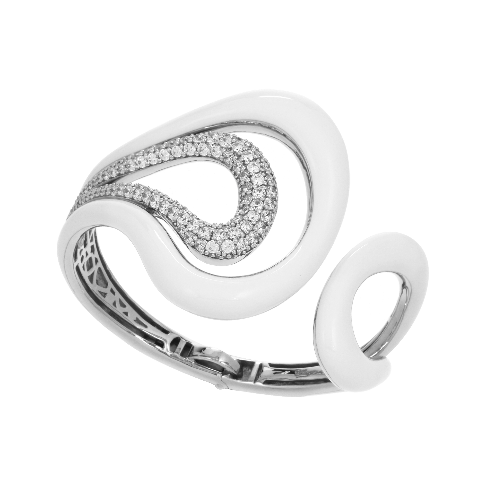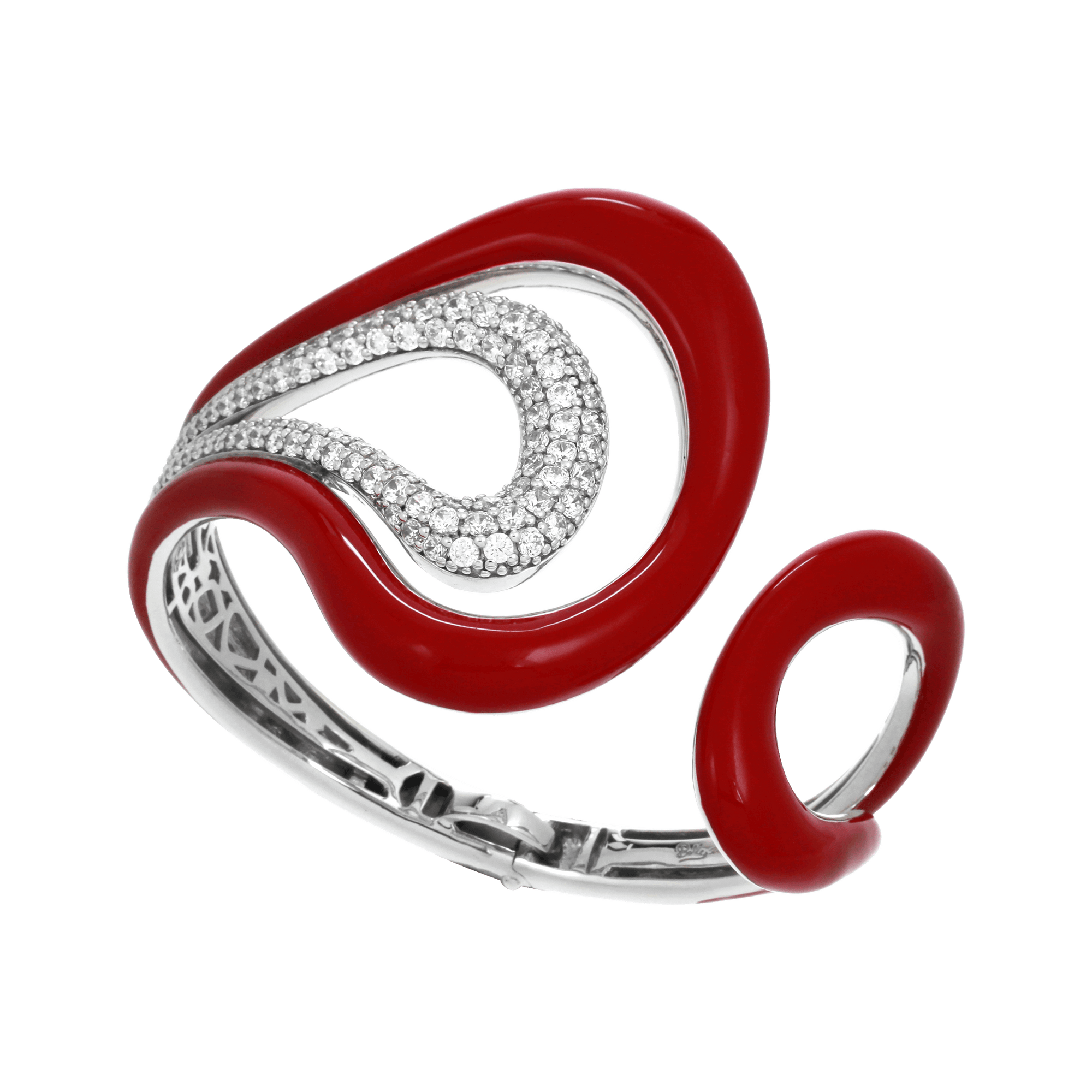 Description: Curves of sterling silver, adorned with hand-painted Italian enamel and pave-set stones
