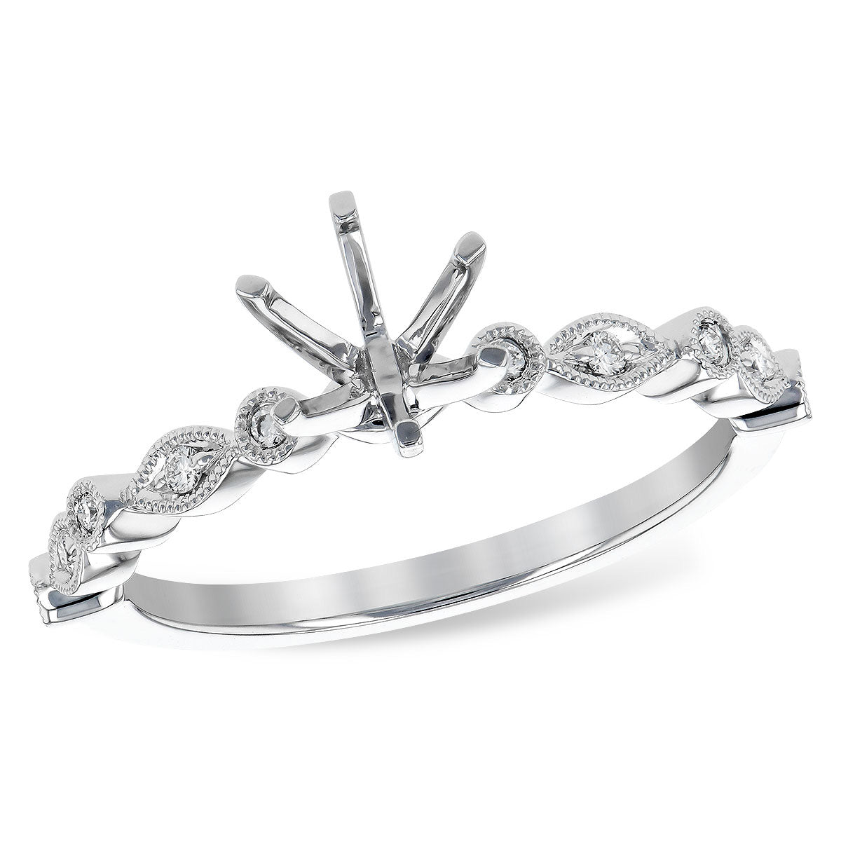 Vintage Inspired 14K White Gold Diamond Semi-Mount Engagement Ring
