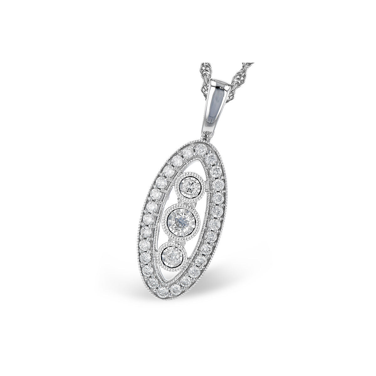 Vintage-Inspired 14K White Gold Oval Diamond Pendant