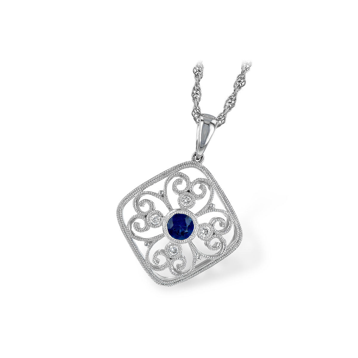 Vintage-Inspired 14K White Gold Sapphire & Diamond Pendant
