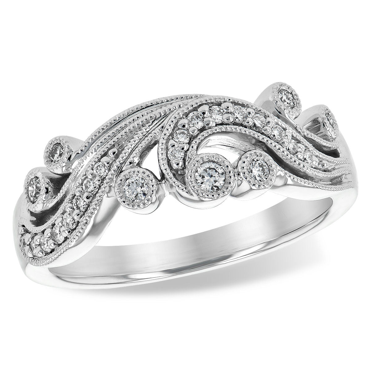 Vintage-Inspired Floral 14K White Gold Diamond Wedding Band
