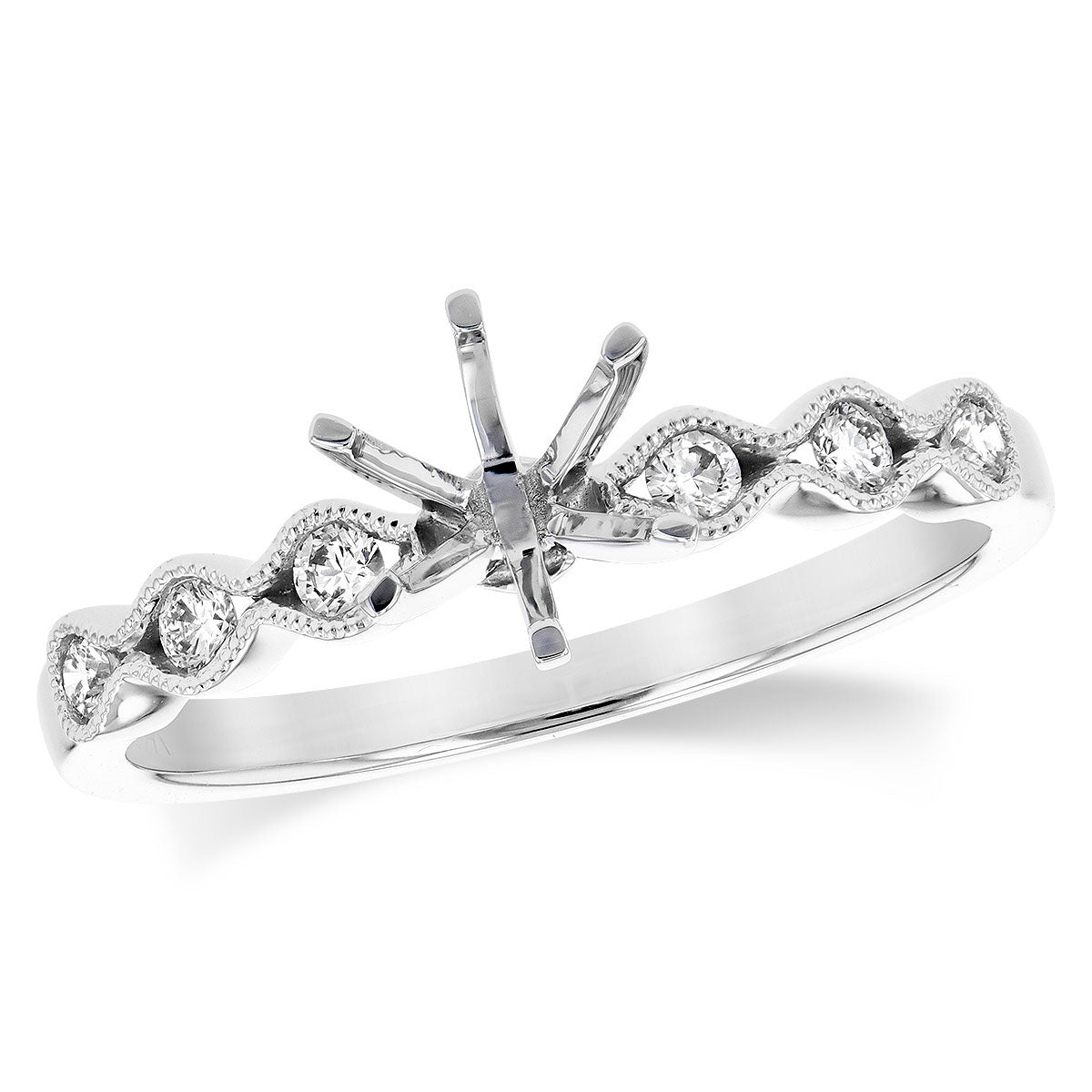 Vintage Inspired Scalloped 14K White Gold Diamond Semi-Mount Engagement Ring