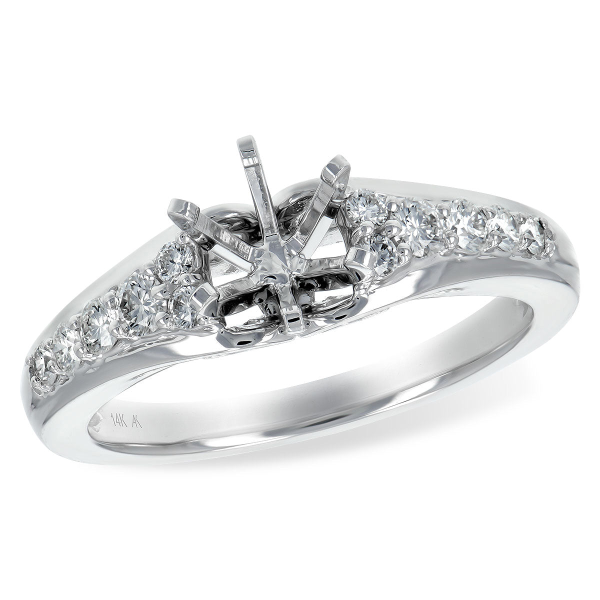 Wide 14K White Gold Diamond Semi-Mount Engagement Ring