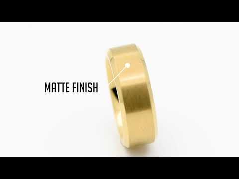 For a super-cool (and affordable!) spin on the classic wedding band, try this 6mm-wide stunner in Gold-IP-plated Stainless Steel. It features a sleek brushed center and a glossy beveled edge, and a comfort-fit - plus, it comes in sizes 9 to 12!