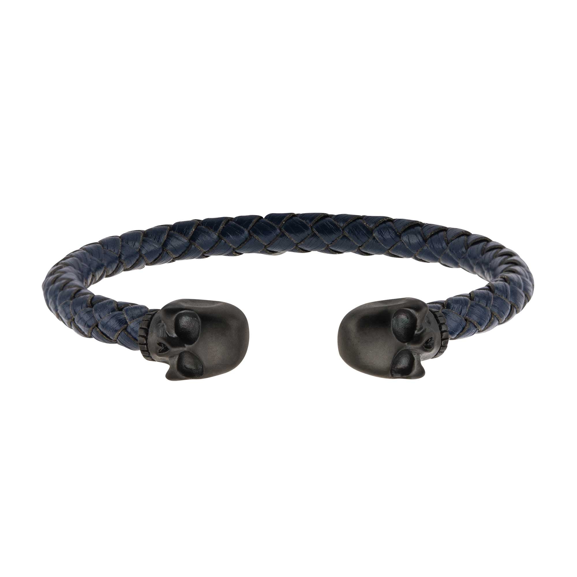 Blue Leather with Black Plated Skull Cuff Bracelet