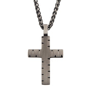 Stainless Steel & Gun Metal IP Chiseled Cross Pendant with Gun Metal IP Chain Necklace